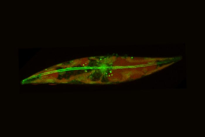 Image of an Arctic diatom, showing the actin filaments that run down its middle and enable its skating motion.