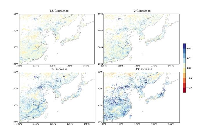 "Previously, it was believed that flood risk changes would vary under different future socioeconomic scenarios," explains study lead author Yuki Kimura. "However, under the same level of global warming, the geographic distribution of flood risks is actually broadly similar across socioeconomic pathways." This approach using large-scale simulations with a global flood model and climate projection data allowed the research team to more accurately evaluate future flood risks across much of the Earth's land surface. These findings offer policymakers powerful new insights for adaptation and preparedness strategies, by separating out the unpredictable effects of real socioeconomic factors.