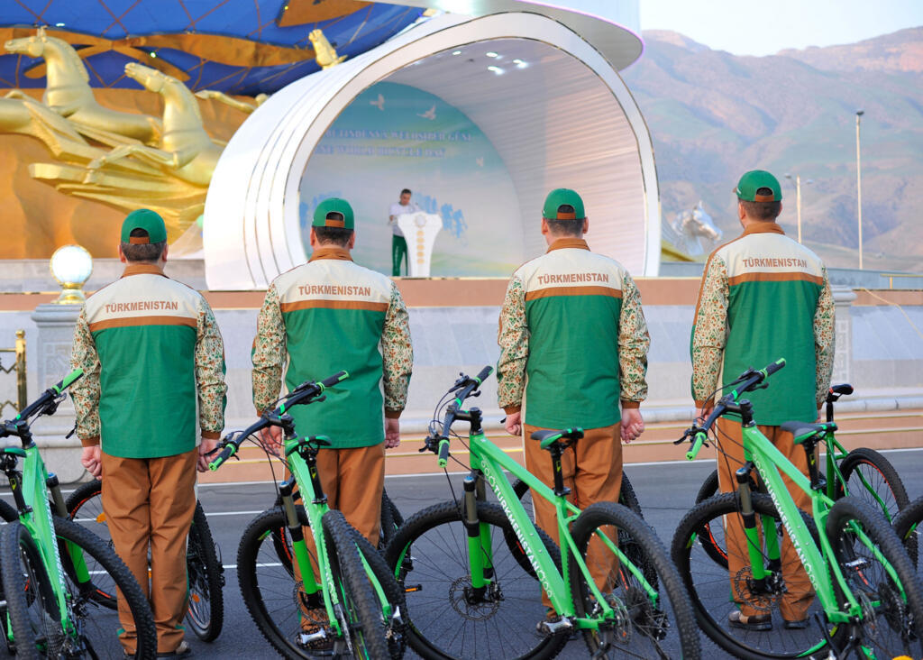 Turkmenistan's fitness fanatic former president Gurbanguly Berdymukhamedov leads a World Bicycle Day event in Ashgabat © Igor SASIN / AFP