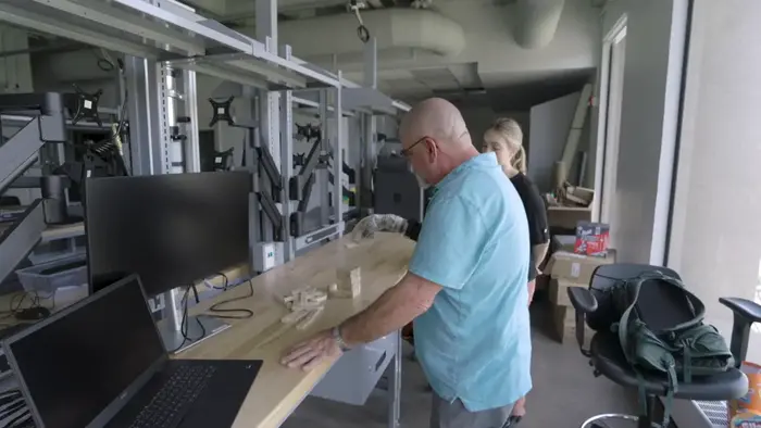 A research participant demonstrates the Case Western Reserve University sensory-enabled neuro-controlled prosthesis, manipulating Jenga blocks and tying shoelaces. A longer, broadcast-quality B roll video is available at this link.