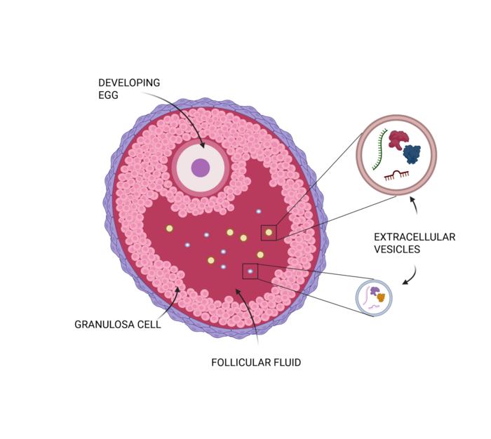 The study compared the effects of small (100 nanometres in diameter) and large (300 nanometres in diameter) vesicles on granulosa cells. Granulosa cells are supporting cells within the follicle that produce steroid hormones and help the oocyte mature, thereby regulating follicle development and fertility.