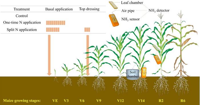 Recently, a research team in the Hefei Institutes of Physical Science of the Chinese Academy of Sciences has revealed that one-time nitrogen (N) application, a labor-saving practice favored by many farmers, increases both soil and canopy ammonia (NH3) emissions in maize fields, while reducing grain yield and nitrogen use efficiency.