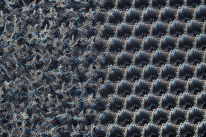 A special device then shakes this ball mill to and fro more than 30 times per second, as a result of which its contents are ground up. Initially, the powder granules become smaller, which increases their surface area. After a few minutes, the frictional heat, increased pressure and kinetic energy initiate a chemical reaction. The finely ground particles combine to form larger structures, scaffolds that can act as a filter. This little-known branch of chemical manufacturing is known as mechanochemistry.
