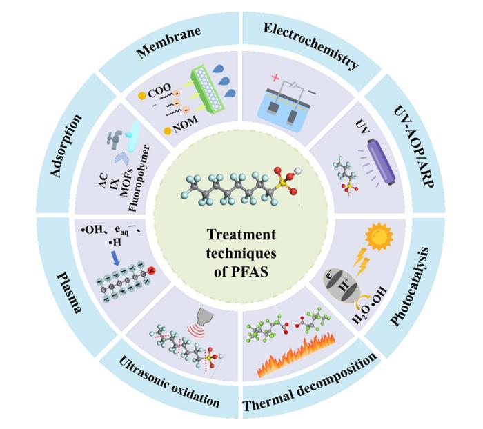 The review, led by researchers from North China Electric Power University and collaborators, summarizes major advances from the past three years across eight physicochemical approaches: adsorption, membrane separation, electrochemical treatment, UV-based oxidation and reduction, photocatalysis, thermal decomposition, ultrasonic oxidation, and plasma technology. These methods are capable of breaking PFAS’s notoriously strong carbon–fluorine bonds, achieving removal rates exceeding 90% in many cases.