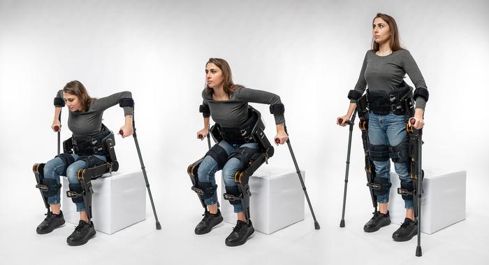 The motorized exoskeleton TWIN is a wearable robot designed to provide energy to people with little or no mobility enabling them to stand up, maintain an upright position, walk, and sit down, with important applications in medicine and rehabilitation therapies.