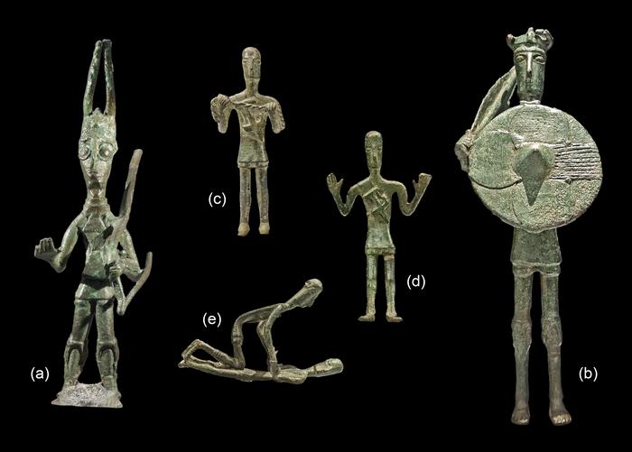Bronzetti of the Uta-Abini style from Sardinia. (a) Abini-Teti, (b–e) Monte Arcosu-Uta; images not to scale (photos: HW Nørgaard, D Berger).