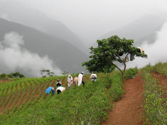 Aymara women harvesting coca leaves in Bolivia. Photo by Caroline Conzelman