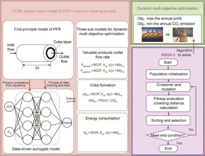 The research was carried out by an international team led by Professor Meihong Wang from the University of Sheffield and Professor Xiao Wu from Southeast University. This study developed a PCML-based hybrid model that significantly reduced the computational demand for multi-objective optimization from 19.2 hours to 77 seconds. The optimization results demonstrate that dynamic adjustment of operating parameters in response to coke formation can simultaneously enhance profitability and reduce CO2 emissions. Notably, the research reveals that a 28.97% reduction in annual profit could lead to a substantial 42.89% decrease in annual CO₂ emissions. The proposed multi-objective optimization framework comprehensively considers the entire operational cycle of steam cracking process, incorporating the environmental impacts of the decoking process—an aspect frequently neglected in existing studies.