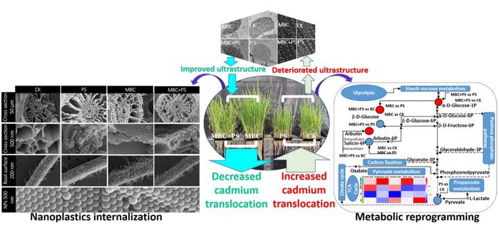 Journal Reference: Rana, M.S., Ren, R., Imran, M. et al. Mitigating combined internalized toxicity of nanoplastics and cadmium in rice through metabolic and biochemical regulations under supply of biochar biofilters derived from Mikania Micrantha. Biochar 7, 98 (2025). https://doi.org/10.1007/s42773-025-00488-6