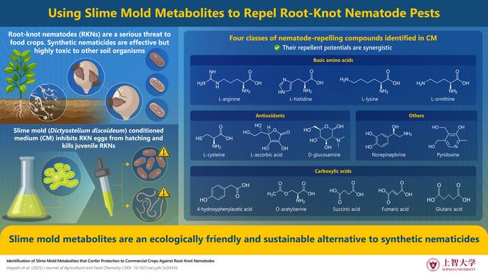 A team of researchers led by Professor Tamao Saito from the Faculty of Science and Technology at Sophia University, Japan, has discovered 14 compounds secreted by slime molds that repel RKNs and could be the source of new, non-toxic anti-RKN pesticides. Their research was first made available online on July 29, 2025, and published in Volume 73, Issue 31 of the Journal of Agricultural and Food Chemistry on August 6, 2025.