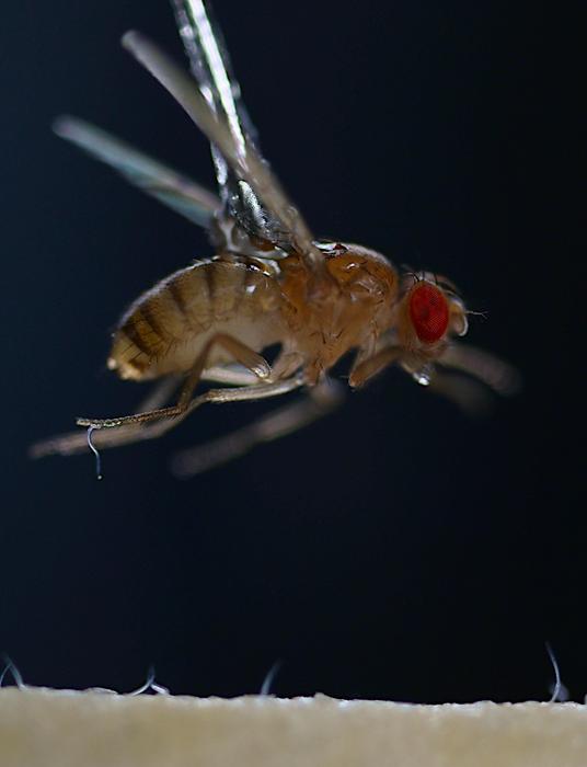 “It’s very difficult to glue a wire to a fruit fly,” he says. “Usually, it took me half an hour, or sometimes an hour.”