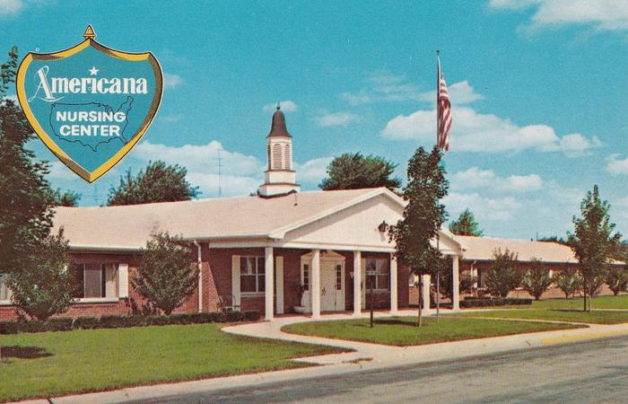 Founded in 1960, Americana was conceived to bridge the growing gap “between hospital and the private home,” according to its early marketing materials. Americana’s facilities were strategically sited near regional hospitals in growing suburban and rural markets. Its facilities were purpose-built, single-story structures styled in familiar neocolonial architecture – with brick facades, white porticos and decorative shutters – but internally organized according to clinical, hospital-style layouts. Americana’s leaders borrowed tactics from the booming motel industry, blending real estate development, standardization and institutional medicine to build nursing homes across the Midwest that felt like home but functioned like hospitals.