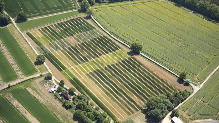 Aerial view of the 183 year-old Broadbalk winter wheat plot experiment at Rothamsted, Hertfordshire, UK