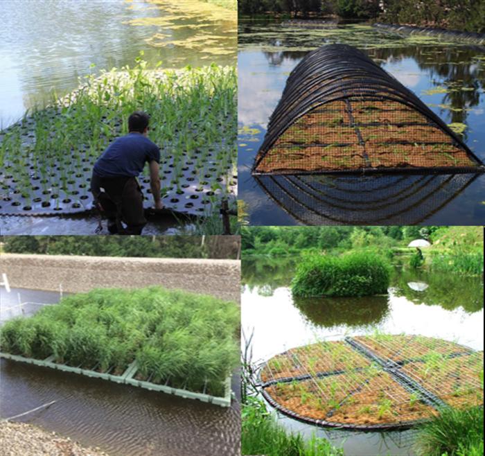 Artificial or constructed floating wetlands involve planting wetland vegetation on floating rafts.