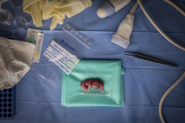 Winning photo in the "photojournalism" category at the "Wildlife Photographer of the Year 2025": Examination of a southern white rhino foetus as part of the science and conservation project "BioRescue", led by the Leibniz Institute for Zoo and Wildlife Research