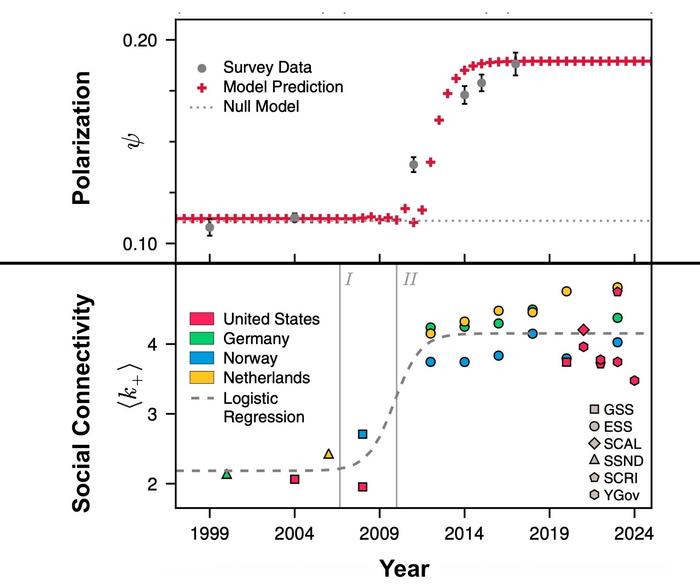 "The decisive contribution of this study is that it reconciled both phenomena using a mathematical social model," explains Thurner. "This enabled us to show that increasing connectivity must lead to sudden polarization once a critical connectivity density is exceeded—just like a phase transition in physics, such as water turning to ice," adds Hofer. "It is fascinating that these phase transitions also exist in societies. The exact location of these critical thresholds still needs clarification. According to our results, for close relationships, it lies somewhere between three and four people," the researchers note.