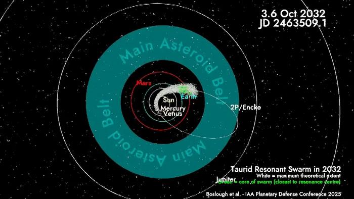 “Our findings are that we have the technology to test the Taurid resonant swarm by using existing telescopes for targeted sky surveys in 2032 and 2036 when the hypothetical swarm will make very close approaches,” said Boslough.