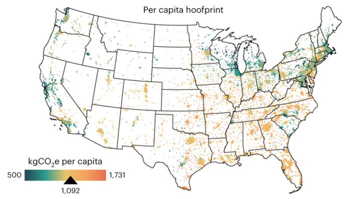 Supported in part by the U.S. National Science Foundation, the team calculated and mapped those impacts, which they've dubbed meat's "carbon hoofprint," for every city in the contiguous U.S. While the study does underscore the size of America's urban carbon hoofprint—it's larger than the entire carbon footprint of Italy—it also provides city-specific information that residents and governments can use to make positive changes.