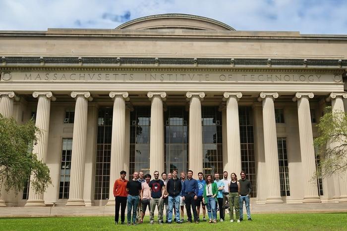 Members of the MIT Plasma Science and Fusion Center (PSFC) Disruptions Group, in front of the MIT Dome