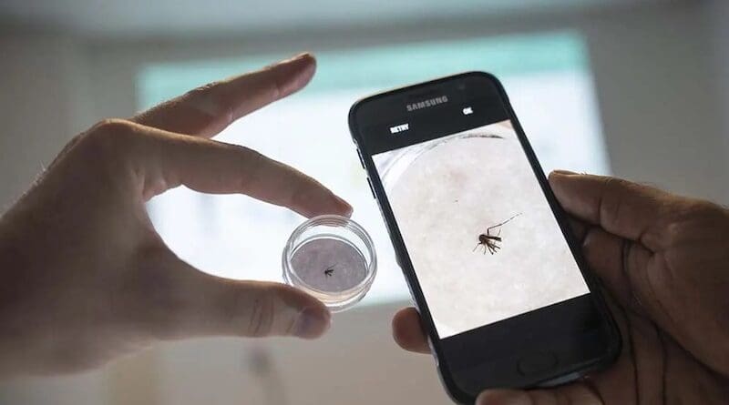 Using an AI tool in a smartphone to identify a disease-spreading mosquito.