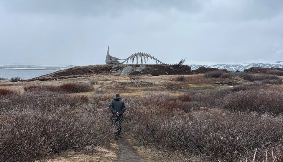 Remi Strand on the way to the Drakkar-Leviathan art object, built by Russians near Vardø. Photo: Irina Kravtsova