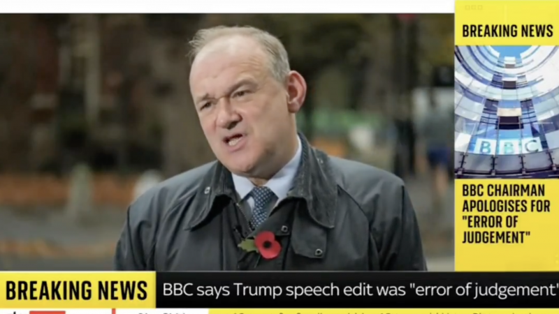 Sir Ed Davey blasts Nigel Farage for teaming up with Trump to attack the BBC
