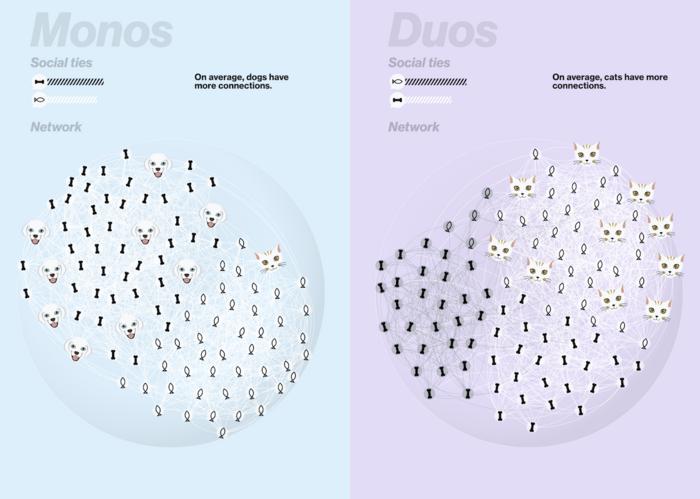 In a fictional parallel universe, there are two planets: Monos and Duos, inhabited by cats and dogs. Each year, the ten most popular residents are ranked based on their social connections.
