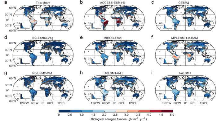The team estimated global natural terrestrial BNF at 83.0 (78.2–89.8) Tg N yr-1, indicating ~18% underestimation in CMIP6 models with a multi-model mean of ~67.7 Tg N yr-1. To improve the model performance in the next phase of CMIP, the team suggest adding temperature and ECM into the representation of BNF, and also to constrain the parameters with N isotope measurements.