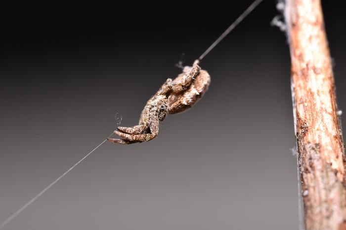 Different species of spiders produce different silks that serve different purposes, from floating on air to cradling eggs. The triangle weaver spider, Hyptiotes cavatus, weaves and holds a three-sided web under tension, which it releases the moment prey flies into the web, quickly tangling the prey in the spring-loaded threads. Thus, the web can move much faster than any muscle in the spider’s body, illustrating how silk can amplify a spider’s abilities. Jessica Garb and colleagues sequenced the genome of Hyptiotes cavatus to learn more. Proline is an amino acid with a ring-shaped structure that has been shown to influence the extensibility, supercontraction, and elasticity of spider silk. The authors found that the triangle weaver spider has an expanded set of MaSp2 genes, which encode silks rich in proline, resulting in dragline silk with among the highest known proline content: up to 24.3% as calculated by characterizing amino acid composition directly from draglines. The triangle weaver spider’s silk proteins share characteristics with those produced by Darwin's bark spider (Caerostris darwini), but the spiders are distantly related, suggesting convergent evolution of proteins involved in silk extensibility. According to the authors, understanding how these proline-rich protein sequences enable the spring-loaded mechanism may inform design of novel high-performance biomaterials.