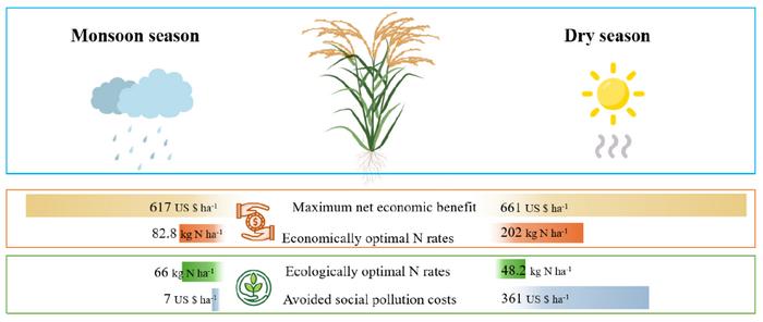 The team conducted economic and environmental analyses to pinpoint both “economically optimal” and “ecologically optimal” nitrogen rates. During the monsoon season, the best economic results came from applying around 83 kilograms of nitrogen per hectare, providing a net economic benefit of nearly $617 per hectare. For irrigated dry-season rice, the optimal economic rate was higher, about 202 kilograms per hectare, which brought a $661 per hectare benefit. However, when accounting for the social and ecological costs of pollution and environmental damage, lower nitrogen application rates yielded far greater long-term gains.