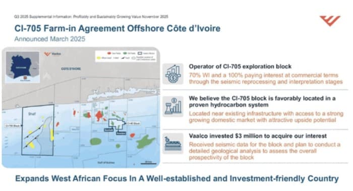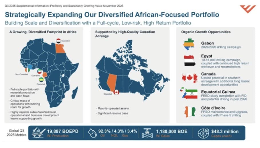 - Near-term catalysts include upcoming drilling campaigns in Gabon, Egypt, and Côte d'Ivoire, along with long-term prospectivity in Block P offshore Equatorial Guinea and the Atlantic Margin.