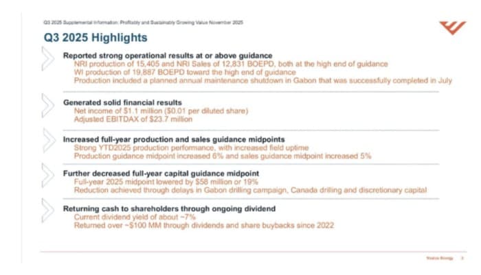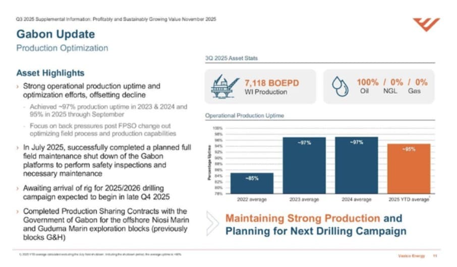- Despite uneven results caused by production setbacks in Gabon and a Q3 earnings and revenue miss, the company's production hit the upper range of estimates and it retains ample liquidity.
