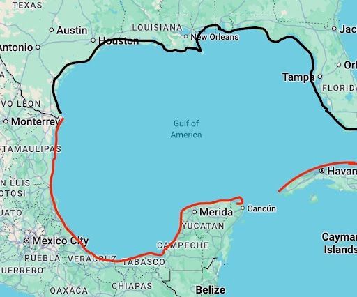 “I called the Gulf of Mexico, the Gulf of America,” Trump explained, “because to me, it was always the Gulf of America. We have 92% of the frontage. Why isn’t it the Gulf of America?”