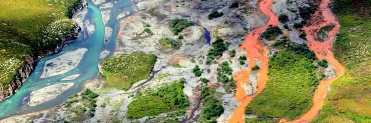 An aerial view shows the rust-colored Kutuk River in Gates of the Arctic National Park in Alaska.