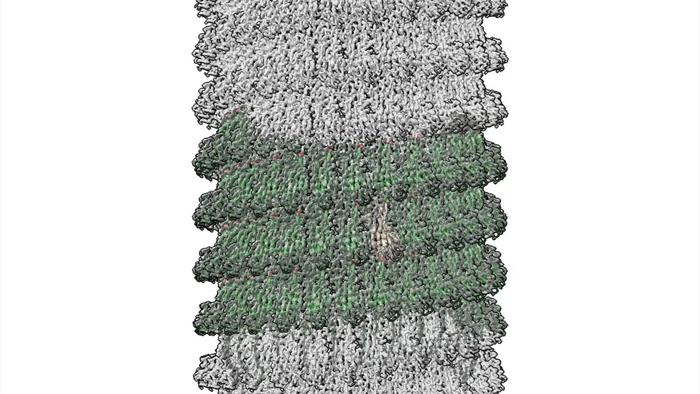 A laboratory model depicts a small, simplified segment of the protein structure of cannulae. (Conticello lab)