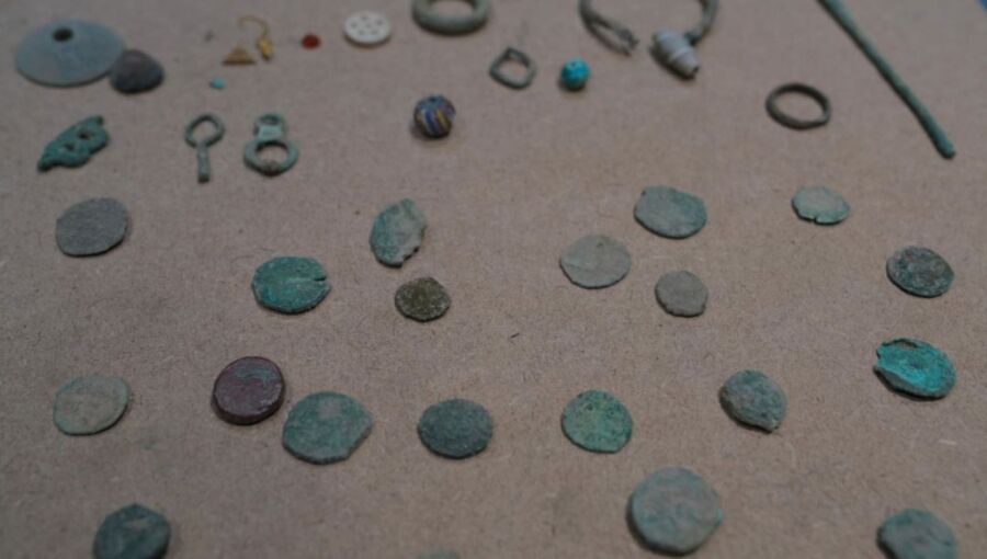 The recovered items included 350 coins of various sizes, 10 copper metal pieces, two gold pieces, and pottery and stone artefacts comprising jars, human and animal figurines, stone spindles, beads and other historically significant pieces.