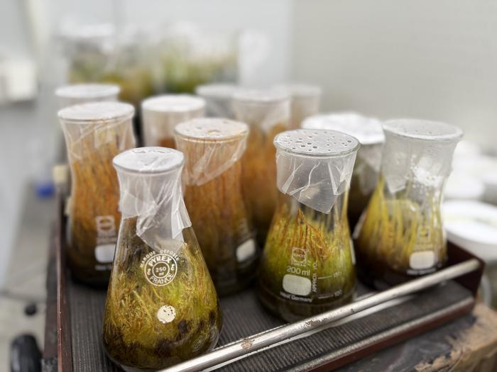 In the climate room at the University of Oulu, mosses and their microbial partners are cultivated to study how microbes support plant survival in diverse environmental conditions. Image Kaisa Lehosmaa / University of Oulu