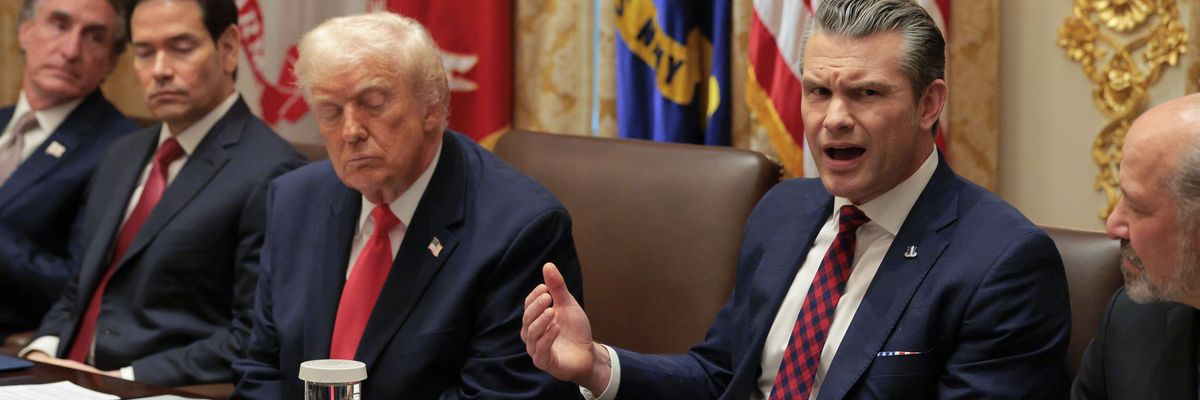 US Defense Secretary Pete Hegseth speaks alongside President Donald Trump, Secretary of State Marco Rubio, and other senior administration officials at the White House in Washington, DC on December 2, 2025.