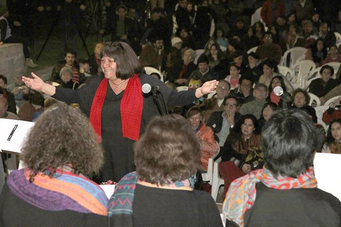 Ana María Jiménez leading the choir at Villa Grimaldi Park for Peace in September 2013