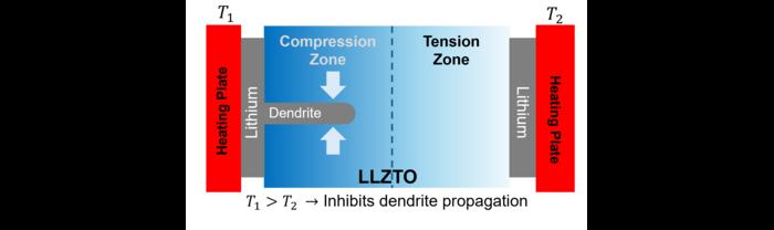 Brown University researchers have demonstrated a promising new strategy for combatting dendrite penetration in solid state lithium batteries. By heating one side of a solid electrolyte and cooling the other, the researchers created thermal stress that kept dendrites from penetrating the electrolyte. The result was a 3-fold increase in the cell's critical current density.