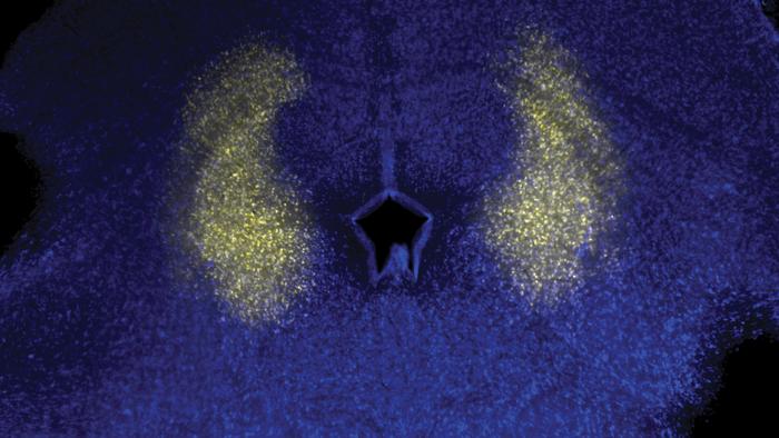 Cold Spring Harbor Laboratory Assistant Professor Arkarup Banerjee and colleagues find that songs and ordinary vocalizations both arise from the midbrain caudolateral periaqueductal gray (clPAG), seen here.
