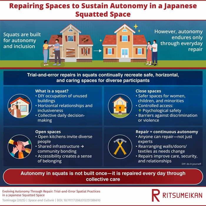 The research was published in the journal Space and Culture on November 20, 2025. It is one of the few academic investigations of squatting in Japan, adding important nuance to a field largely shaped by Western-based contexts. By focusing on hands-on repair and reconfiguration of everyday environments, the paper identifies how autonomy is continually produced, not assumed, within the community.