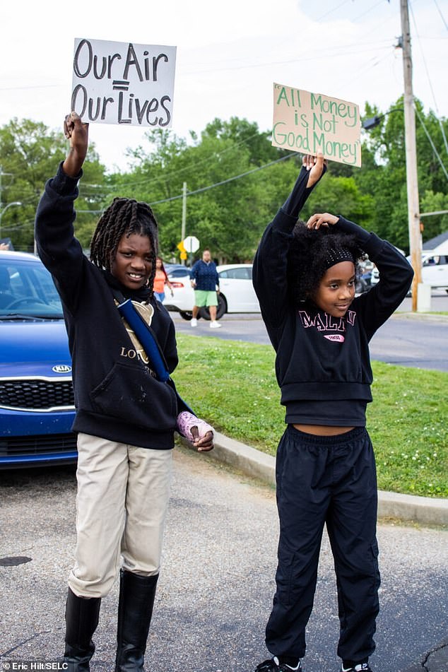 'I can't breathe at home, it smells like gas outside,' said resident Alexis Humphreys through tears. 'How come I can't breathe at home and y'all get to breathe at home?' she continued, holding up her inhaler at a public hearing on April 25
