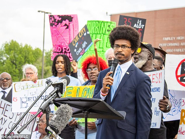 At a protest in late April, Rep. Justin Pearson said: 'They put our lungs and our air on the auction block and sold us to the richest man in the world.'