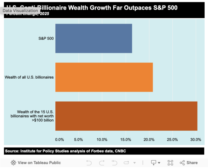 And, according to a new Institute for Policy Studies analysis of data from the Forbes real time billionaire list, the combined wealth of that 12-figure club grew from $2.4 trillion to $3.1 trillion over the course of 2025.
