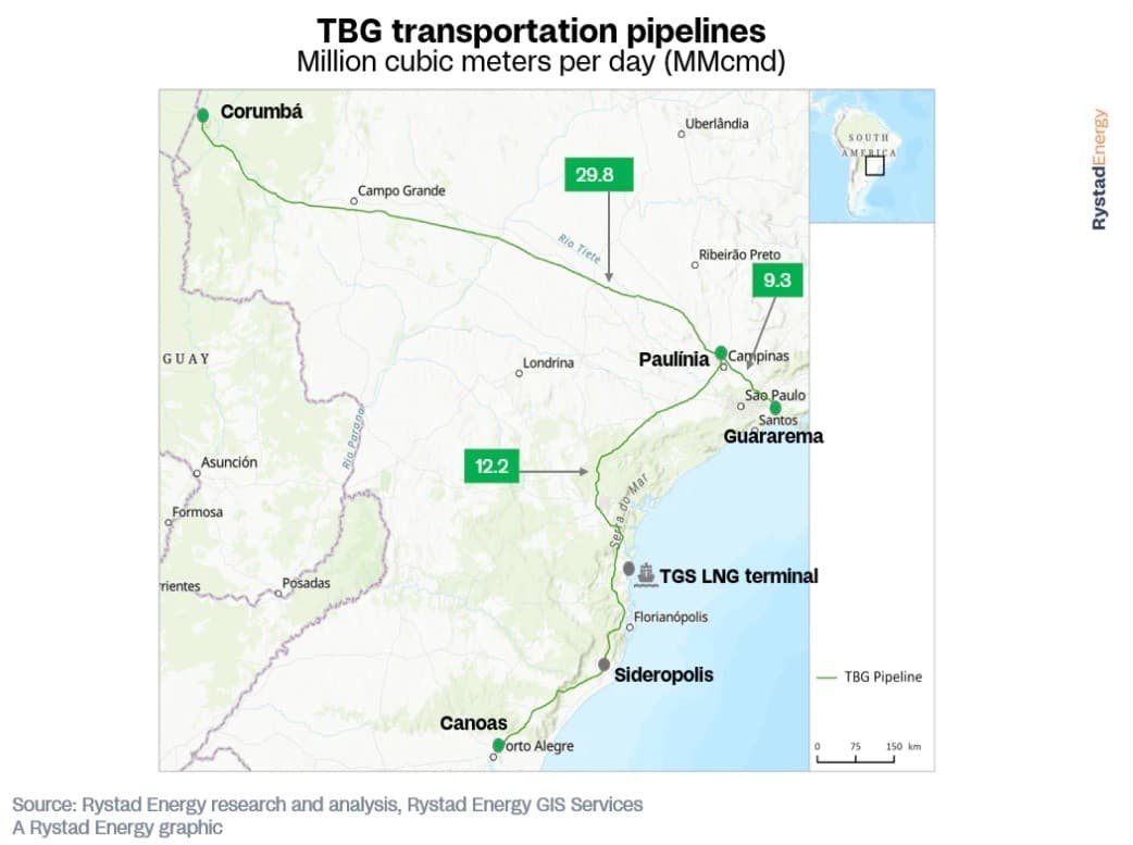 TBG operates the GASBOL corridor, Brazil’s key long-distance gas transmission system linking Bolivian imports to demand centers in the South and Southeast. While new trunklines are not planned, TBG is focusing on optimizing existing infrastructure to boost utilization and diversify supply.