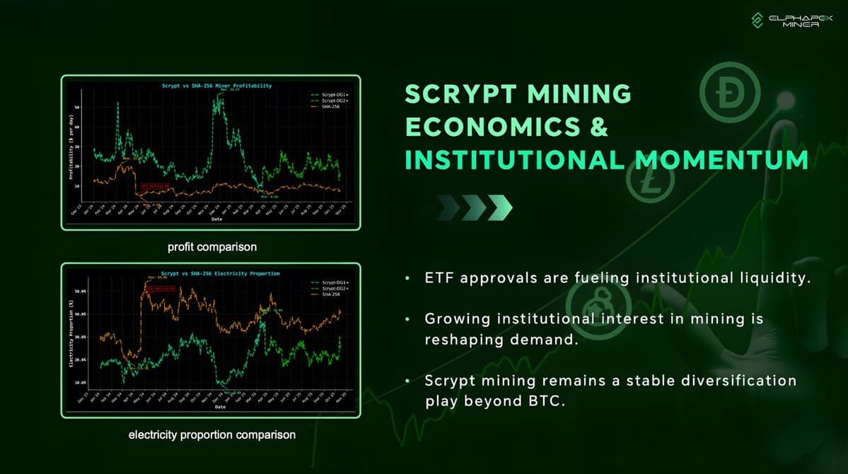 While Bitcoin miners have dealt with rising difficulty, higher capital intensity, and margin pressure following the halving, Scrypt economics have held up better. Company materials show that Scrypt mining delivered stronger realized profitability than SHA-256 mining for much of 2024. And it’s all because of the structure.