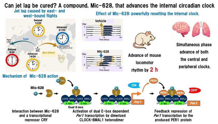 The researchers plan to investigate the safety and efficacy of Mic-628 in further animal and human studies. Because it reproducibly advances the body clock through a well-defined molecular mechanism, Mic-628 may serve as a prototype “smart drug” for managing jet lag, shift work-related sleep problems, and other circadian misalignment disorders.