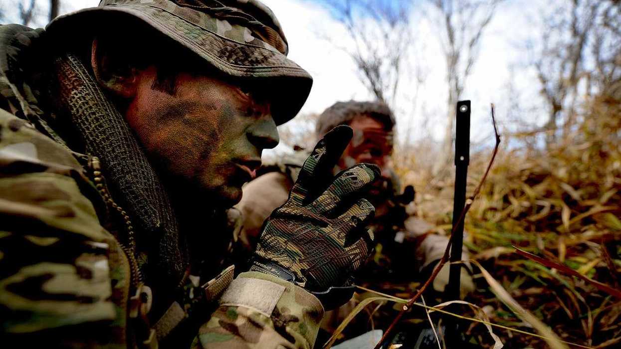 U.S. Air Force Tech. Sgt. Bobby Colliton and Staff Sgt. Dane Hatley conduct combat survival training near Osan Air Base, South Korea, on Oct. 15, 2012 (U.S. Department of Defense/Flickr)