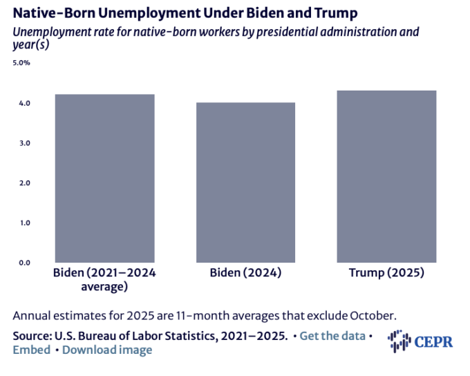 Unemployment for Native-Born Workers Fell Under Biden, but Rose Under Trump